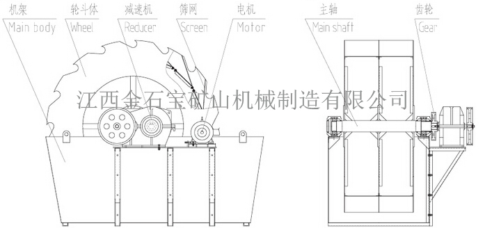 2. 轮斗式洗砂机除筛网外几乎无易损件,用寿命长